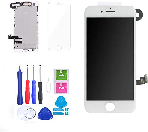 Ukuu LCD Touch Screen, Ricambio Schermo Display Completo LCD Assembly Digitizer per iPhone 7 (Bianco)[ Fotocamera, Sensore Flex] + Set di Strumenti (7 Bianco)