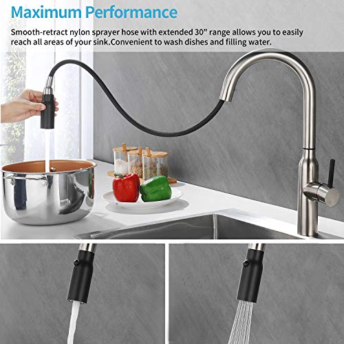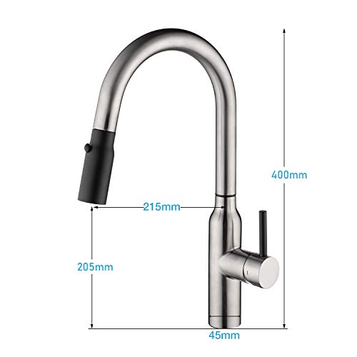 ▶ Facile da Usare: miscelatore con una mano per un facile controllo della temperatura dell'acqua e della portata. Il beccuccio girevole a 360 ° ad arco alto è molto facile da riempire e risciacquare l'intera area di lavaggio. Il sistema di retrazione meccanica aggiornato assicura che la testa di nebulizzazione retrattile sia sempre nella sua posizione originale dopo l'uso.