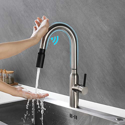 ▶ Rubinetto Della Cucina del Sensore: il rubinetto del rubinetto della cucina monocomando è dotato di sensore tattile ed è possibile toccare il corpo della valvola del rubinetto per attivare e arrestare il beccuccio. Le batterie non sono incluse nella confezione.