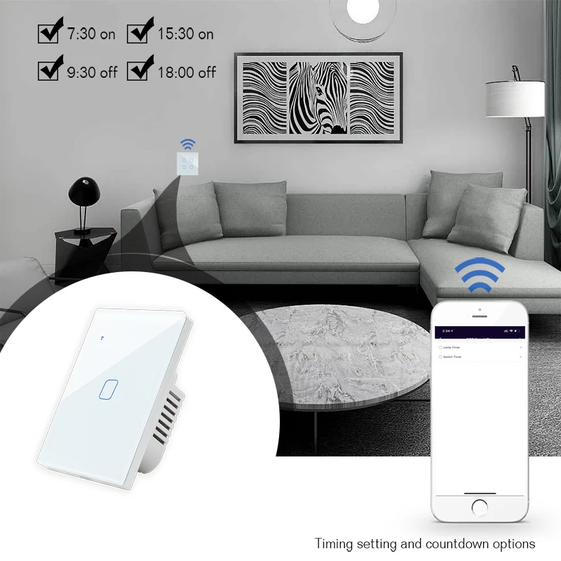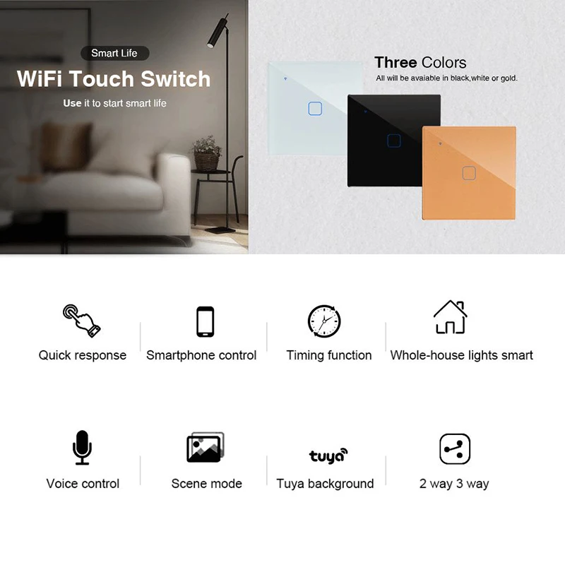 Wifi Touch Switch Smart Wall Switch 2/3 Way 1/2/3/4 Gang ac100-220v EU UK Standard Work with Alexa Google Home