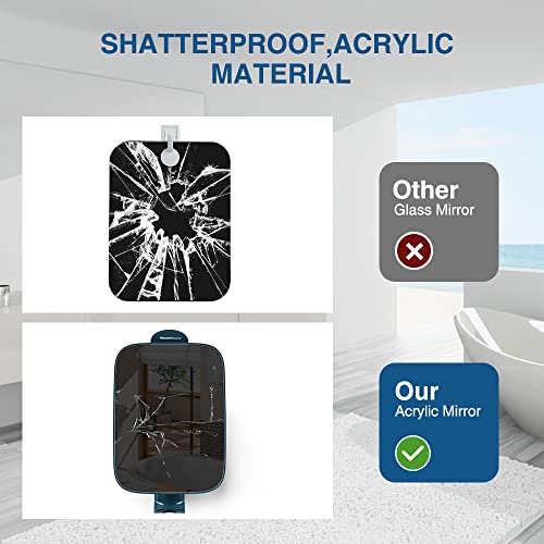 TOUCHBeauty Specchio Doccia Antiappannamento, 3X Specchio Ingranditore per Trucco da Barba o Depilazione con Pratico Sostegno per Schiuma da Barba,Rotazione a 360,20cmx15cm AG-2071 (Blu)