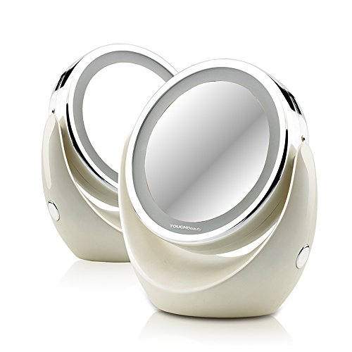 TOUCHBeauty TB-0678 doppio, a LED alimentata a batteria per barba e trucco & 1x/Specchio cosmetico con ingrandimento 5 x, rotazione a 360 gradi