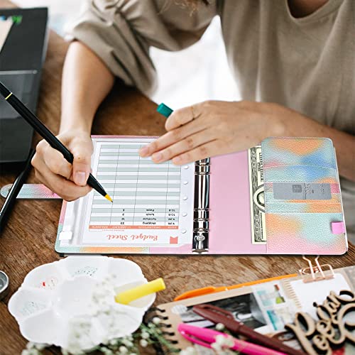 Touchfutrue Budget Planner, A5 Binder Budget, quaderno ad anelli, in pelle, risparmio di denaro, con pellicole, agenda finanziaria, libro di famiglia con scomparto per banconote (rosa)