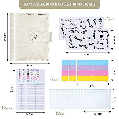 Touchfutrue Budget Planner, A7 Binder Budget, quaderno ad anelli, in pelle, risparmio di denaro, con pellicole, agenda finanziaria, libro di famiglia con scomparto per banconote (texture bianco)