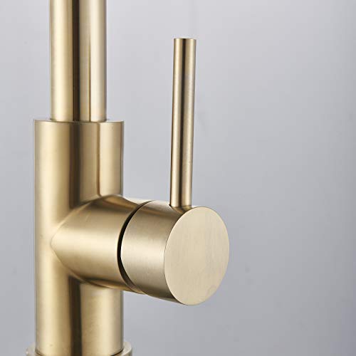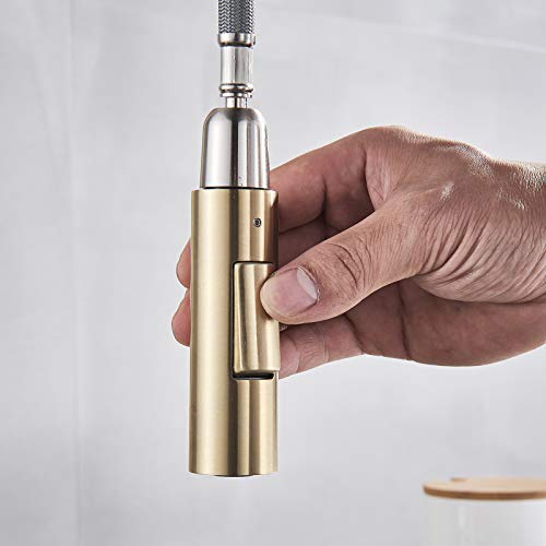 SUGU Touchless - Rubinetto per lavello da cucina, con manico singolo, ad arco alto, estraibile, con sensore di tocco, 2 modalità di acqua, colore: Oro spazzolato