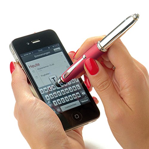 Touchpen - Penna a sfera con luce LED e pennino touch, colore argento/rosso