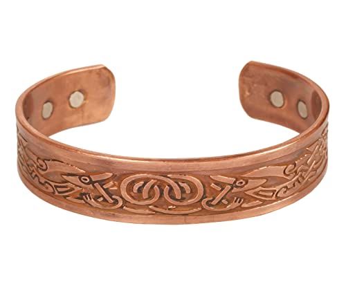 Touchstone Braccialetto magnetico realizzato a mano in rame forgiato a mano con incisione in stile tibetano massiccio e di alto spessore, gioielli in rame puro per donne e uomini. Attraente design