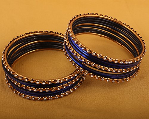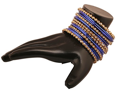 Touchstone Colorati Bangle Collection Indiana Bollywood Lega del Metallo e Strutturato Reale Blu Designer di Gioielli Bangle bracciali. Set di 18. in Antique Tono Oro per Le Donne.