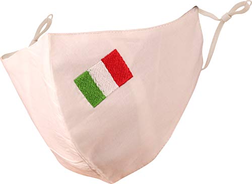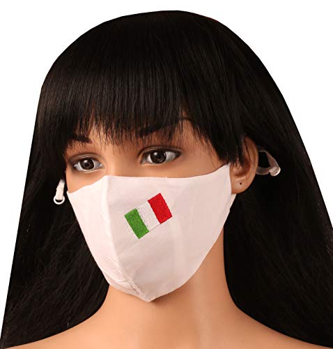 Touchstone Italian Flag embroidered 3 layer large size cotton face masks reusable machine washable adjustable for men, women. (Pack of 1). White