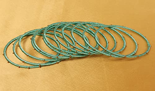 Touchstone New Silk Thread Bangle Collection Indian Bollywood Handcrafted Faux Silk Thread with Golden Beads Exotic Passionate Purple Designer Bangle Bracelets Set of 12 for Women.