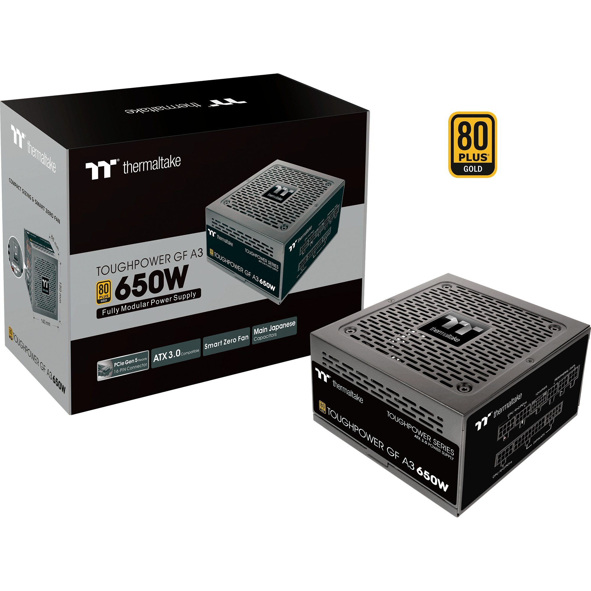 La serie Thermaltake Toughpower GF A3 è certificata 80 PLUS Gold ed è compatibile con le specifiche Intel ATX 3.0. È dotato di un connettore PCIe Gen 5.0 nativo e può alimentare la tecnologia di prossima generazione con un nuovo cavo 12VHPWR. La potenza indicata sul connettore 12VHPWR è la potenza consigliata (Rif. Intel Design Guideline). Il connettore PCIe nativo a 16 PIN (12VHPWR) di GF A3 650W può fornire fino a 300W per schede grafiche PCIe 5.0. La ventola da 120 mm con cuscinetto liquido garantisce un eccellente flusso d''aria. Inoltre, la ventola Smart Zero ruota solo quando il carico supera il 40% dell''alimentazione, riducendo al minimo i rumori indesiderati.