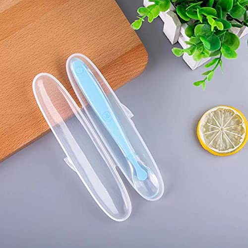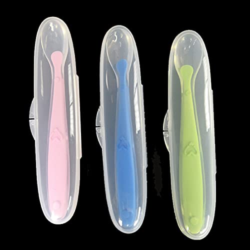 TouGod 3pcs Cucchiaino Svezzamento Set Cucchiaino Silicone Neonato Cucchiai Manico Lungo e Punta Morbida Viene fornito con scatola della polvere