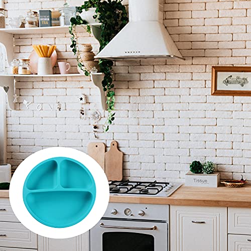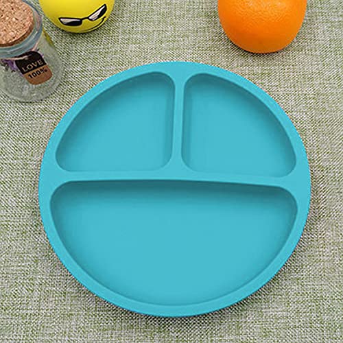 TouGod Set Posate 1 + 2 pezzi vassoio in silicone per lo svezzamento con cucchiaio e forchetta (Blu)