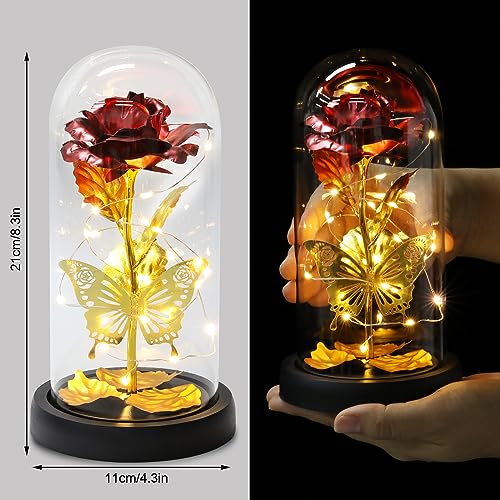 Miglior fiore rosa per le donne - Design premium- La dimensione del kit di rose Beauty and the Beast è W 14cmx H 20cm. La copertura in vero vetro consente alla luce LED di risplendere più luminosa della copertura in plastica, resiste all'ingiallimento e allo scolorimento ed è più facile da pulire - È un regalo adatto per amiche donne, un regalo di compleanno per i 50 anni, un regalo per un anniversario, un regalo di matrimonio, un regalo per le sorelle e un regalo per la laurea.