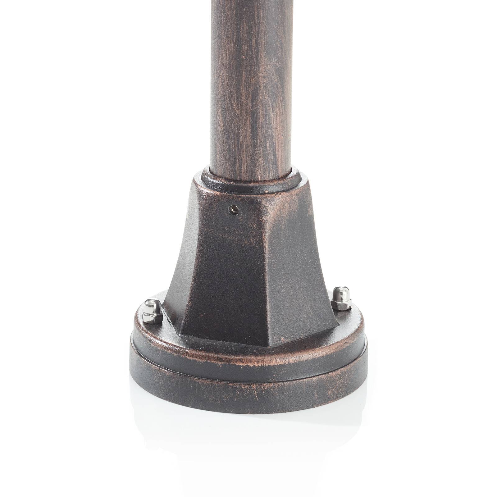 Toulouse - un lampione dal fascino antico Le lanterne antiche sono state l'ispirazione per il design del bellissimo lampione Toulouse. La base, il piede e la lanterna dell'apparecchio sono realizzati in alluminio e verniciati a polvere con un effetto rame antico. Grazie a questo e al grado di protezione IP43, è protetto in modo ottimale dalle intemperie. Grazie al vetro trasparente, solo leggermente colorato, la sorgente luminosa - è possibile anche il LED - illumina aree estese.