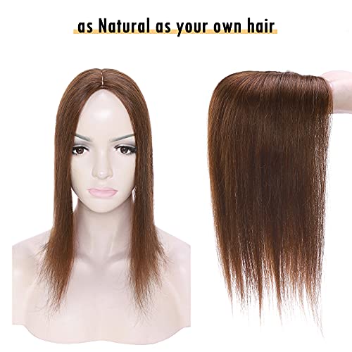 Toupet Capelli Donna Veri 10 * 12cm Extension Capelli Veri Clip Remy Human Hair Topper Lunga 15cm Pesa 27g, 4 Marrone Cioccolato