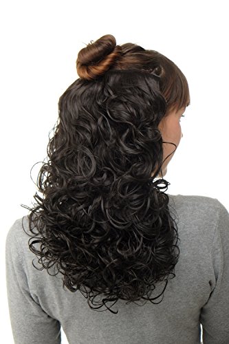 WIG ME UP - Toupet Mezza parrucca Clip, set 7 pezzi- Voluminosi Ricci Castano scuro Lunghi circa 40 cm Larghi 25 cm H9312-4