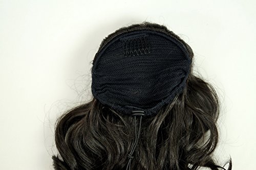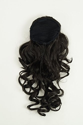 Toupet castano scuro, voluminoso con preziosi ricci, di fibra sintetica di alta qualità, che con un sistema fatto da due fermacapelli a pettine e sezione elastica viene fissato ai propri capelli legati. Le extensions vengono fissate in modo sicuro e attaccate direttamente alla nuca.