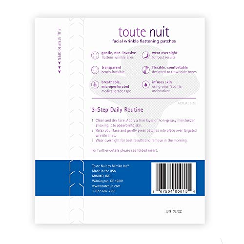 Toute Nuit Jet forma patch copre la zona dalla parte superiore del ponte del naso, tra le sopracciglia fino al centro delle pieghe orizzontali - 20 cerotti