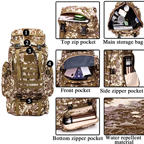 TOUYAKO Zaino tattico militare, Borsa d'assalto militare di grande capacità da 80 litri, Zaino per insetti da 3 giorni, Zaino per attività all'aperto come caccia, escursionismo e campeggio mimetico...