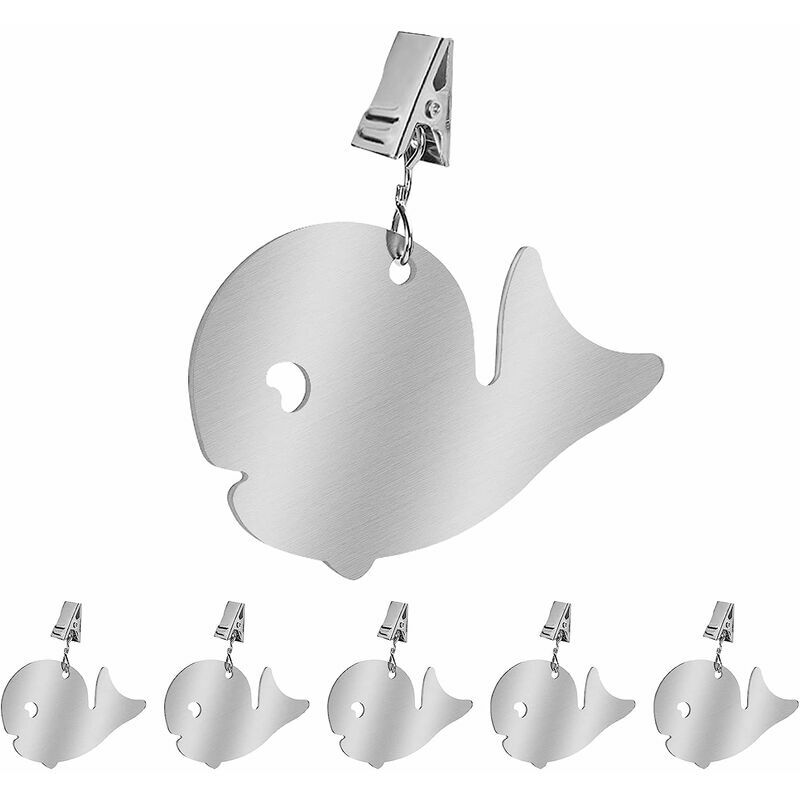 Clip per tovaglia in acciaio inossidabile: ci sono 6 clip per tovaglia in acciaio inossidabile.Un numero sufficiente può soddisfare le diverse esigenze della tua vita quotidiana, adatto per la decorazione e cambiare l'aspetto del tavolo.Materiale perfetto: la clip per tovaglia è realizzata in acciaio inossidabile, classico argento opaco, spessore 2,5 mm. È antiruggine, impermeabile e più resistente, può essere utilizzato a lungo. Design divertente: questi contrappesi per tovaglie sono molto belli e anche l'aspetto è davvero unico.Dotato di una clip seghettata per fissare la tovaglia in una posizione adatta e ridurre il movimento della tovaglia. Antivento e antiscivolo: Semplicemente agganciare la tovaglia sotto la tovaglia per evitare che scivoli o venga portata via dal vento. Ampia gamma di applicazioni: il peso della tovaglia è essenziale per l'intrattenimento all'aperto e al chiuso e può essere utilizzato con qualsiasi tipo di tovaglia. Adatto per riunioni di famiglia, ristoranti
