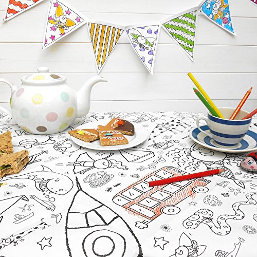 Egg Nogg - Tovaglia da Colorare per Feste, Motivo: Colour-in Teatime Tablecloth