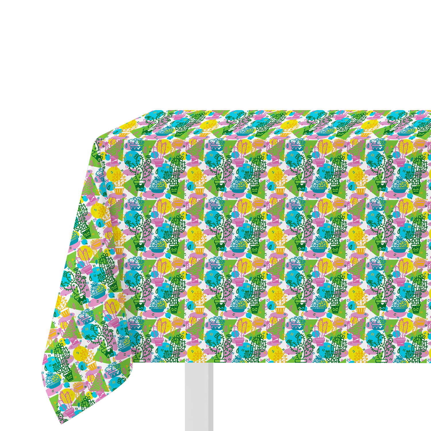 Porta colore sulla tua tavola all'aperto con questa pratica tovaglia. Le sgargianti grafiche a tema tropicale con bellissimi cactus, realizzate in esclusiva per dallo street artist Simone Bonetta, animeranno con allegria la tua estate! Realizzata in misto poliestere e pvc, la tovaglia è indicata per l'utilizzo esterno ricoprendo in maniera ottimale i tuoi tavoli in giardino o sul terrazzo. Preserva la superficie del tavolo da eventuali residui di cibo e bevande ed è davvero semplice da pulire con un colpo di spugna. Adatta per tavoli rettangolari da 10-12 posti. Misure: 120x220 cm.