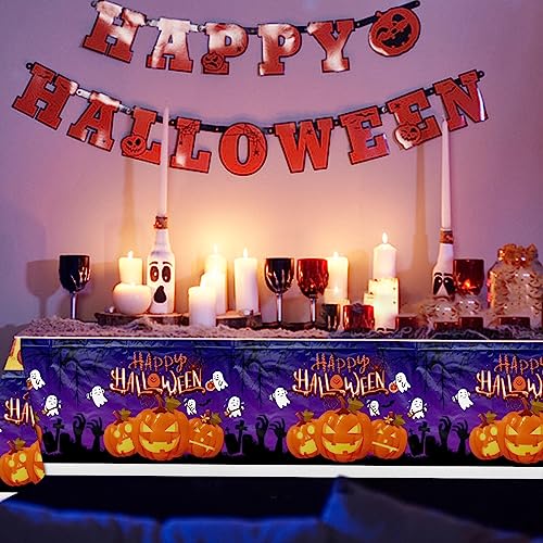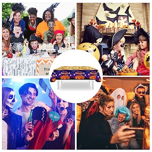 Tovaglia per Halloween per Tavolo Rettangolare,180 x 108 cm,Viola,Tovaglia Usa e Getta per Interni ed Esterni,Decorazioni per La Tavola per Feste di Halloween,Tovaglia in Plastica Zucca
