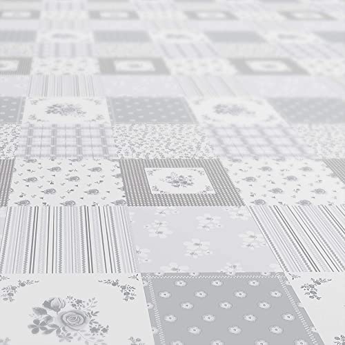 Tovaglia, lavabile, cerata, colore grigio chiaro, patchwork, a quadri, dimensioni a scelta, asciugamani, Hellgrau Patchwork Karo, 160 x 140cm