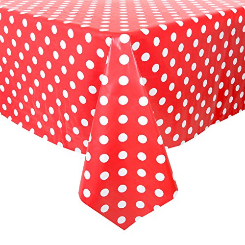 XSS - Tovaglia in PVC, motivo a pois, facile da pulire, dimensioni 140 x 240 cm, colore: bianco/rosso