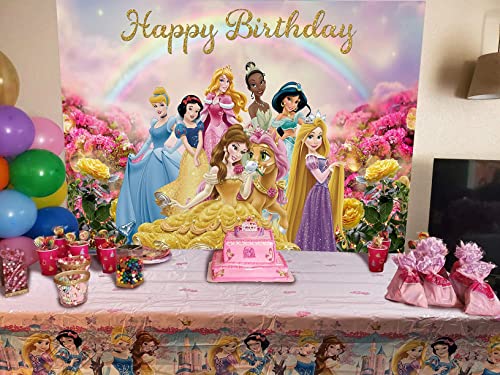 Tovaglia principessa-1PCS1,8 x 1,2m principessa Party Forniture per Bambini ragazze principessa Tema Festa di Compleanno Decorazione Plastica Monouso Copritavolo,Pulibile e riutilizzabile
