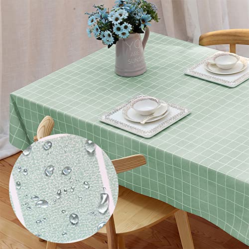 Tovaglia rettangolare in plastica lavabile impermeabile a prova di olio a prova di muffa tovaglia in PVC a quadri verde adatta per la decorazione della cucina di casa picnic all'aperto(137*90 cm)