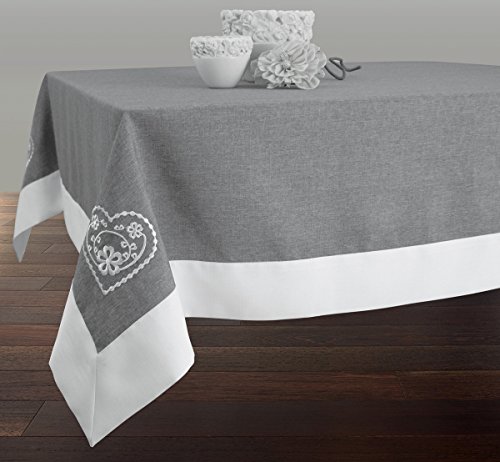 Tovaglia ricamata quadrata 180x180 cm Antimacchia - Grigrioe avec ourlet Bianco - Quadrata 180x180 cm