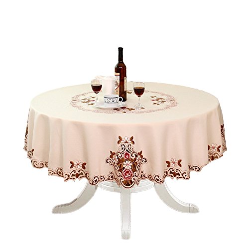 Tovaglia a mano stile Fadfay Modern American Country, tovaglia rotonda, tovaglia rotonda per matrimoni, Poliestere, Beige, Size:120cm in diameter,round.