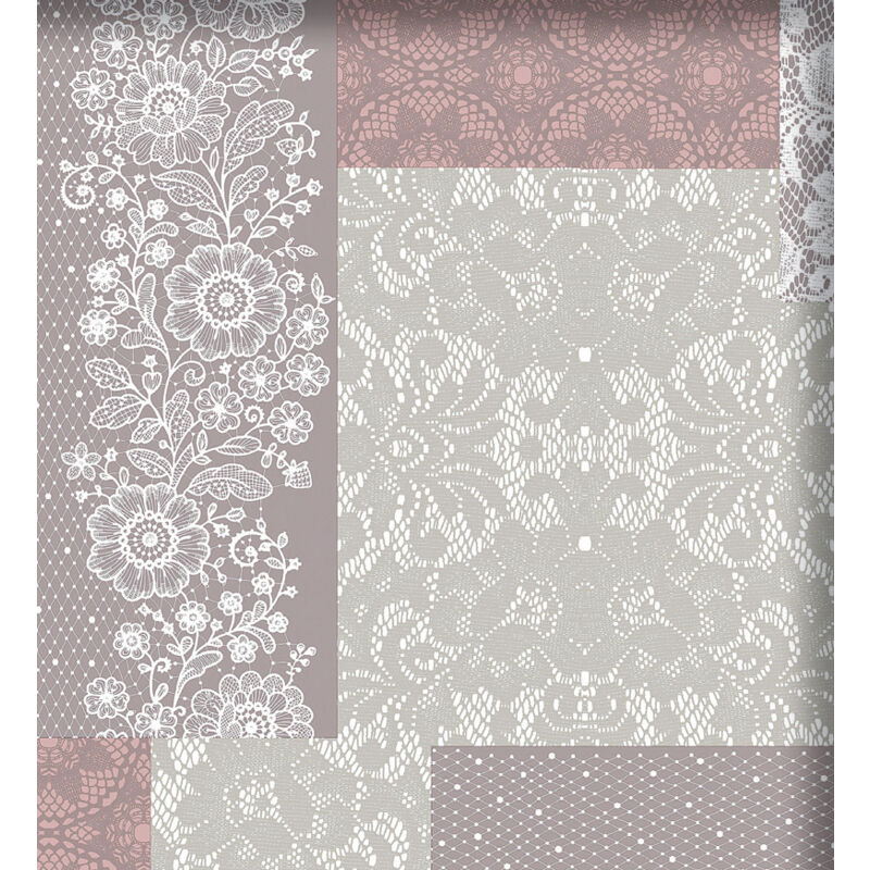 PVC stampato accoppiato a tessuto di polipropilene. Altezza 140 cm. Fantasia Quadretti pizzo rosa. Rotolo da 20 m. L'offerta ed i prezzi si riferiscono a 20 pz. per confezione