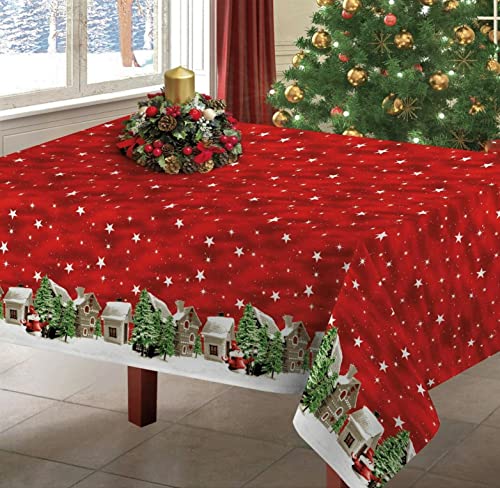 Tovaglie Copritavolo Villaggio di Natale 100% Robusto Cotone Effetto Panama (Rosso, 140x360)