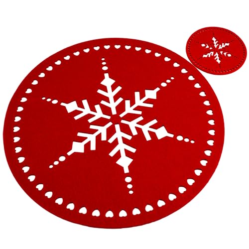 Set di 8 tovagliette rotonde in feltro e 8 sottobicchieri, colore rosso, ideali per la cena di Natale