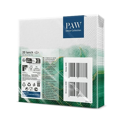PAW - Tovaglioli di Carta Colorati (33 x 33 cm) I 20 Pezzi I Tovaglioli Compleanno I 3 Veli I Decorati per Battesimi, Comunioni I Tovaglioli Carta - Occasioni Speciali, Ornamenti, Lusso - Green dream