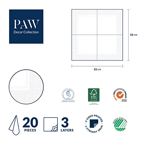 Dimensioni 33 x 33 cm, contenuto della confezione 20 pezzi. I tovaglioli sono stampati con inchiostri ecologici a base d'acqua.