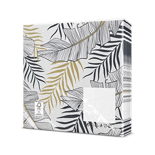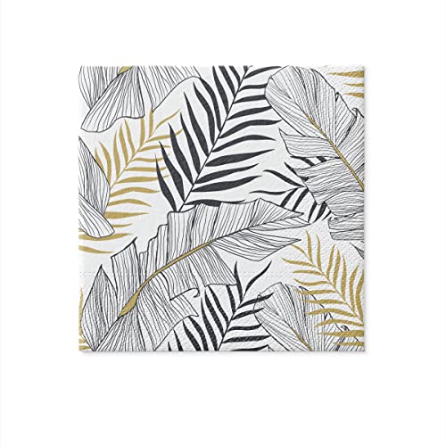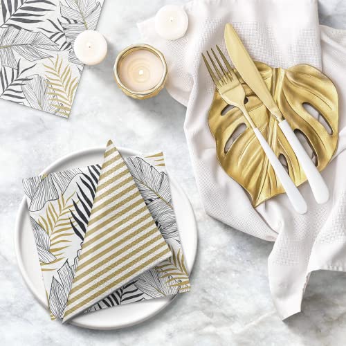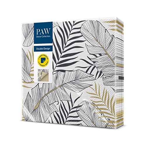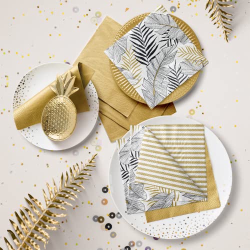 PAW - Tovaglioli di Carta Colorati (33 x 33 cm) I 20 Pezzi I Tovaglioli Compleanno Stampato su Entrambi i Lati I Tovaglioli Carta - Foglie, Oro, Argento, Strisce I Exotic Leaves Stripe