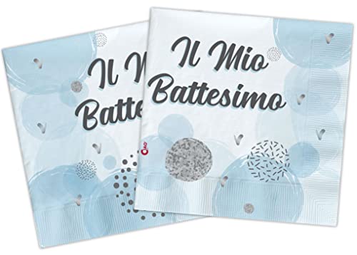 Tovaglioli carta compostabili Battesimo (33x33cm, doppio velo), 20 pezzi, azzurro