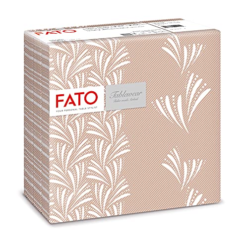 Fato - Tovaglioli in Carta a secco, Airlaid, Effetto Tessuto, Confezione da 50 tovaglioli, Formato 40x40 piegato in 4, Decoro Felci Cappuccino