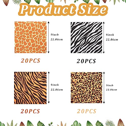 80 tovaglioli Safari con stampa animale, tovaglioli usa e getta con stampa leopardata, stampa zebrata, stampa tigre, stampa giraffa, stampa per bambini, festa di compleanno, baby shower, festa a tema