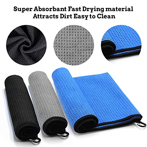Confezione da 3 asciugamani da golf in microfibra: design di grandi dimensioni da agganciare alla borsa da golf o al passante della cintura. Confezione da 3 asciugamani da golf consentono di averne sempre uno come backup. Portalo con te al corso, pulisci la palla da golf prima di mettere, pulisci la tua mazza dopo le altalene.