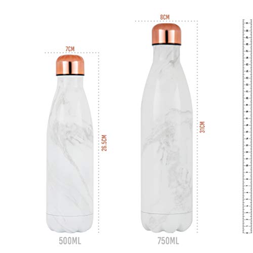 TOWER - Borraccia Sportiva da 500 ml, Isolamento sottovuoto, Marmo Bianco e Oro Rosa, Piccola