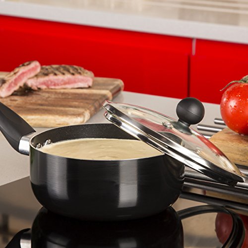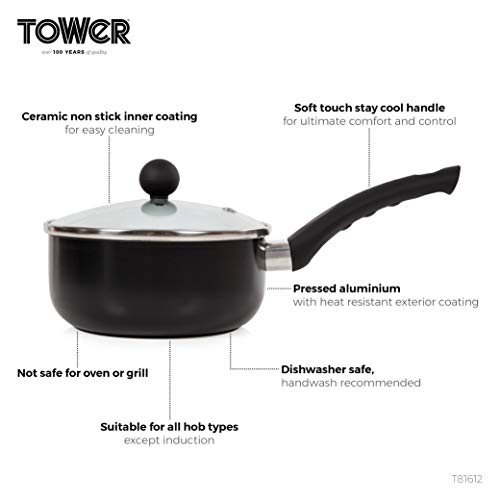 Tower Essentials T81612F - Tegame per Salsa, Acciaio inossidabile, Nero, 14cm