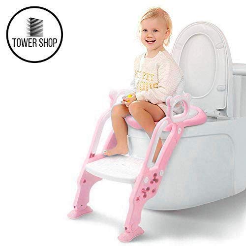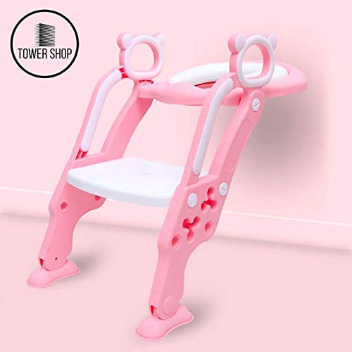 Tower Shop - Wc riduttore bambino, vasino per bambini, 2in1 vasino, wc vasino, trainer per vasino, vasino con scala, nuovo modello 2019, cuscino più alto, più comodo, più stabile (Rosa)