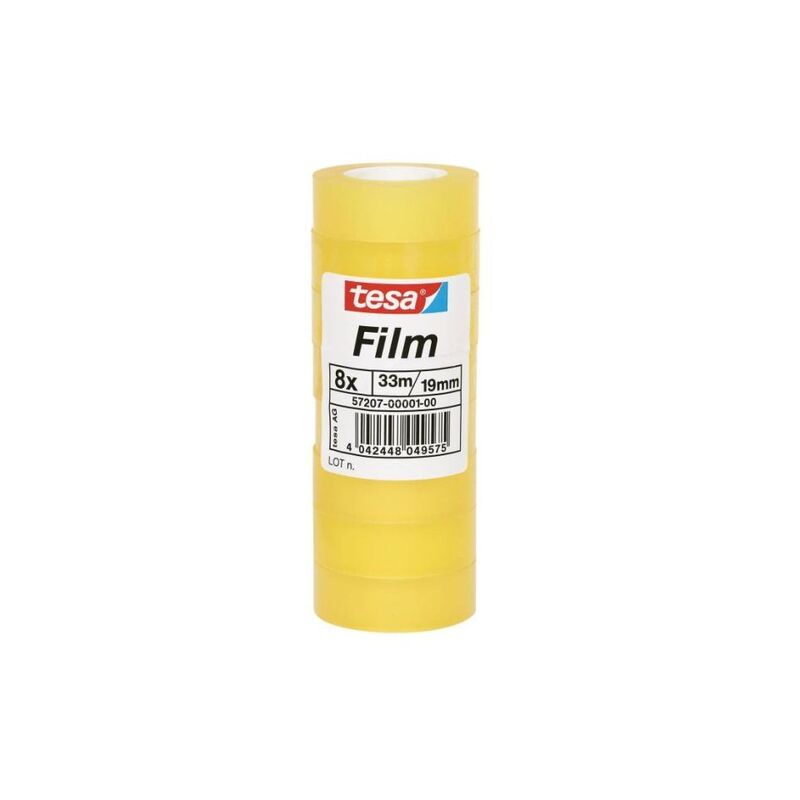 Nome stile: Confezione di rotoli di nastro adesivo + dispenser di nastro adesivo Confezione da 8 rotoli di nastro adesivo tesa trasparente Nastro autoadesivo tesafilm standard In molte situazioni a casa, in ufficio o a scuola è necessario un nastro adesivo di uso generale. La pratica confezione da 8 nastri adesivi permette di avere sempre a portata di mano un cello adesivo. Le dimensioni di 19 mm x 33 m ne consentono l'utilizzo con qualsiasi dispenser di nastro tesafilm manuale o da tavolo. È particolarmente utile per gli spazi in cui si lavora con materiali leggeri come carta e cartone: basta usare il nastro per attaccare, fissare o riparare tutto ciò che serve. Perfetto per i regali che devono essere incartati in modo semplice e veloce. Il rotolo di nastro si srotola in modo silenzioso, il che è positivo per qualsiasi luogo di lavoro. È rivestito con un adesivo atossico, privo di solventi e sicuro per i bambini. Ideale per chi desidera un nastro adesivo trasparente da utilizzare a