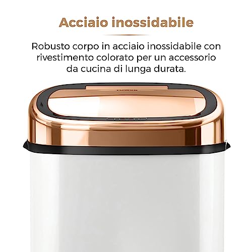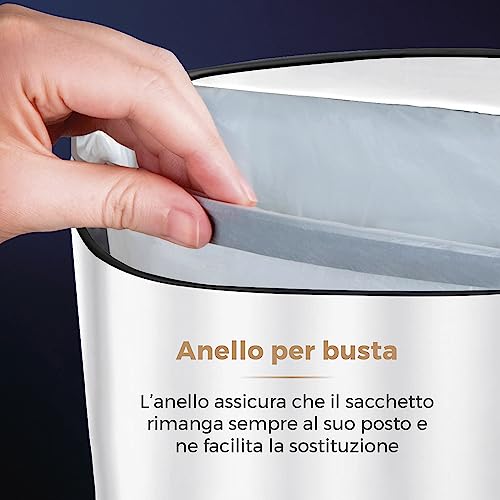 CON SENSORE DI MOVIMENTO: il coperchio di questo cestino automatico si apre automaticamente quando la mano si avvicina, il che permette uno smaltimento dei rifiuti più igienico