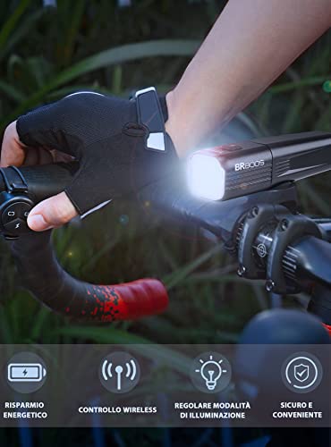 ✅ Telecomando wireless: i fari per bici TOWILD BR800S sono dotati di un telecomando wireless.Si fissa facilmente al manubrio tramite una cinghia oring. Puoi facilmente cambiare modalità tramite il telecomando, invece di interrompere il ciclo per premere il pulsante sulla luce.È possibile premere l'interruttore in basso per far girare la luce alla massima luminosità.Premi a lungo per accenderla,rilascia per tornare alla luminosità precedente.Il telecomando wireless rende la tua corsa più sicura.